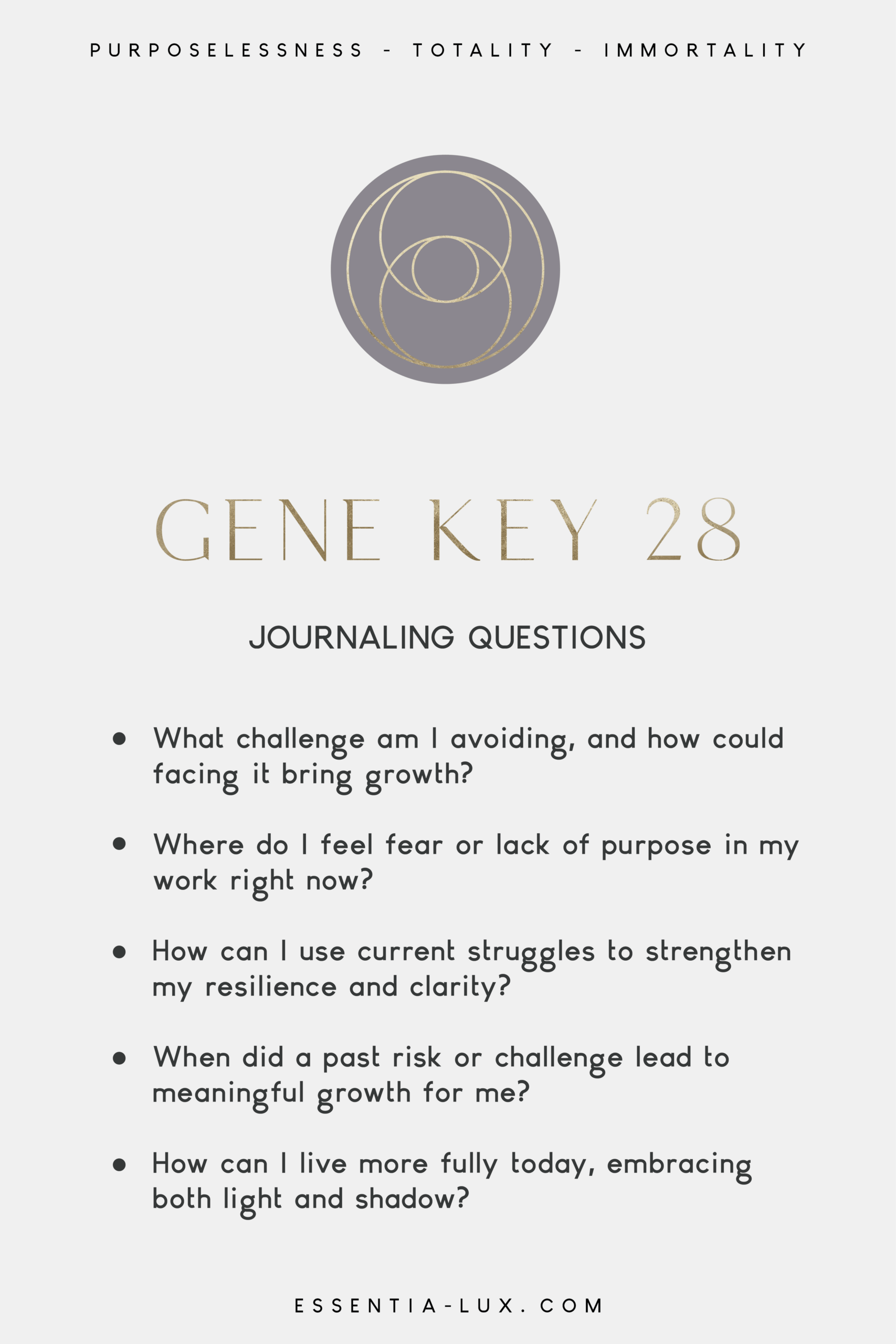 Step fully into the energy of Gene Key 28. Face your challenges with courage, embrace the lessons they bring, and allow each experience to guide you toward deeper purpose, soulful growth, and meaningful impact in your business and life.