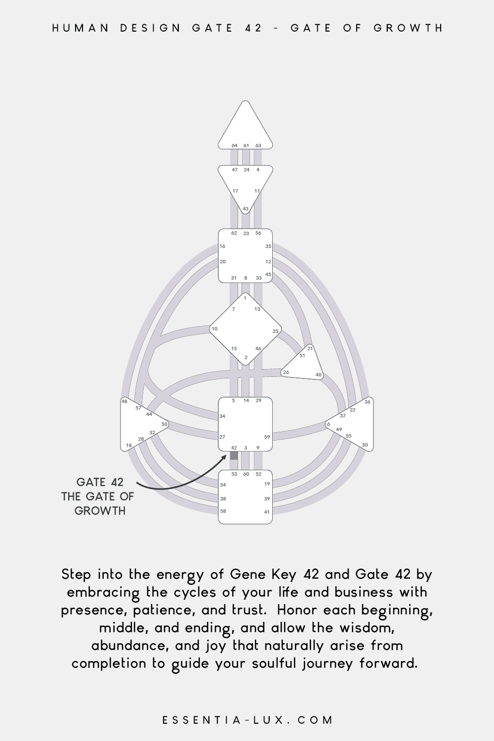 “Human Design Gate 42 carries the energy of soulful growth and fulfillment, guiding you to complete cycles, trust timing, and cultivate abundance and impact in your business with presence, patience, and purpose.”