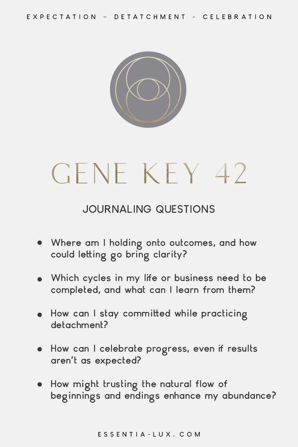 “Gene Key 42 holds the frequency of graceful completion and expansion, guiding you to release expectations, honor life’s cycles, and cultivate joy, wisdom, and abundance in your business and creative endeavors.”