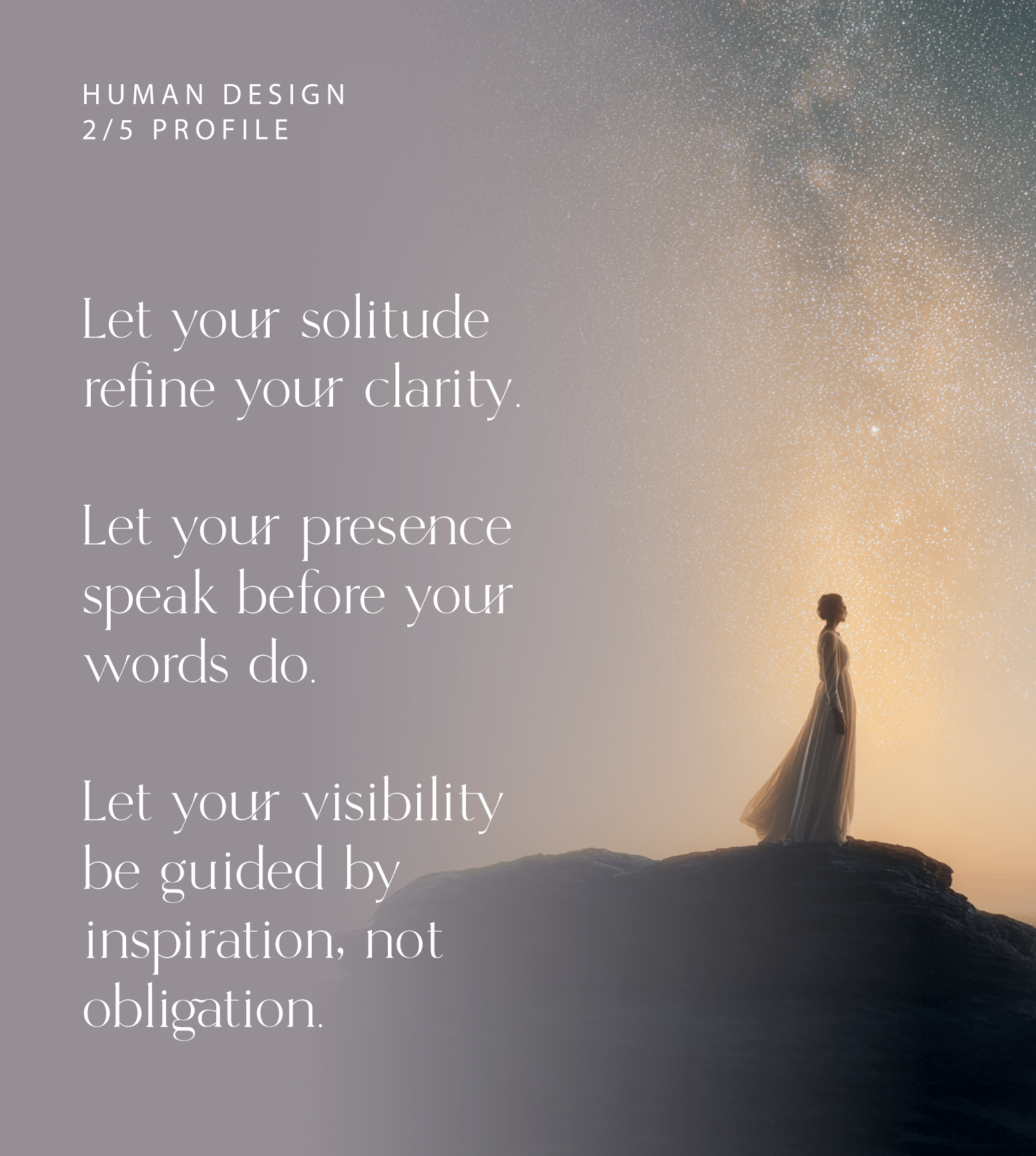 The Human Design 2/5 profile carries such a mystical, guiding energy. You are intuitive, naturally gifted, and designed to impact others through clarity, insight, and presence.